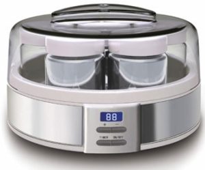 Эта модель йогуртницы с электронным управлением, где есть дисплей с таймером и индикатором работы. Она автоматически выключится после приготовления йогурта. Индикатор работы показывает оставшееся время до завершения приготовления напитка.