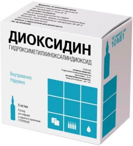 Диоксидин — антибактериальный препарат широкого спектра действия из группы производных хиноксалина, обладает химиотерапевтической активностью при инфекциях, вызванных Proteus vulgaris, Pseudomonas aeruginosa, Klebsiella pneumoniae, Escherichia coli, Shigella dysenteria, Shigella flexneri, Shigella boydii, Shigella sonnei, Salmonella spp., Staphylococcus spp., Streptococcus spp., патогенных анаэробов (Clostridium perfringens), действует на штаммы бактерий, устойчивых к другим химиопрепаратам, включая антибиотики. Показания к применению Диоксидин — Гнойные бактериальные инфекции, вызванные чувствительной микрофлорой при неэффективности других химиотерапевтических средств или их плохой переносимости.