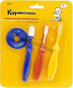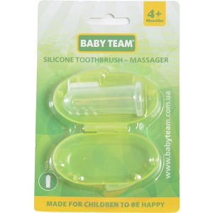 Для самых маленьких деток рекомендуют силиконовую щётку-массажёр, которую называют напалечником. Это прозрачный колпачок, на конце которого расположено множество коротких силиконовых волосков или пупырышек. Особенность щетки в том, что она одевается на указательный палец взрослого или на мизинец. С помощью такой щетки можно не только мягко снимать налет с первых зубов, но и хорошо массировать десны при помощи ворсинок, предварительно смочив ее в кипяченой воде. После чистки щетку нужно вымыть с мылом и тщательно прополоскать под струей теплой воды. Хранят щетку-напалечник в отдельном открытом стаканчике, чтобы конец с ворсинками располагался вверху и «дышал». В отличие от обычной зубной щетки пальчиковую можно менять по мере ее износа. Напалечники выпускают следующие фирмы: «Lubby» (Польша), «Курносики» (Тайланд), «Pur» Royal Industries (Таиланд), и др.