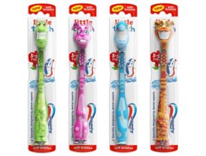 Для деток постарше много щёток в виде сказочных персонажей и даже с отдельной крышкой, что очень удобно в хранении. Но такие щетки могут быть и неудобными для малыша в использовании. Например, плохие отзывы пишут о щетке «Курносики». Из-за медвежьей фигурки ручка оказалась слишком короткой для взрослого, а ведь на первых порах ребенку всегда помогает взрослый. Из личного опыта: обратная сторона головки у некоторых детских щеток – мягкая (из мягкой резины или поролона). К примеру, у щеток Aquafresh. Ребенок активно жует головку щетки, за два раза изжевывая обратную сторону.